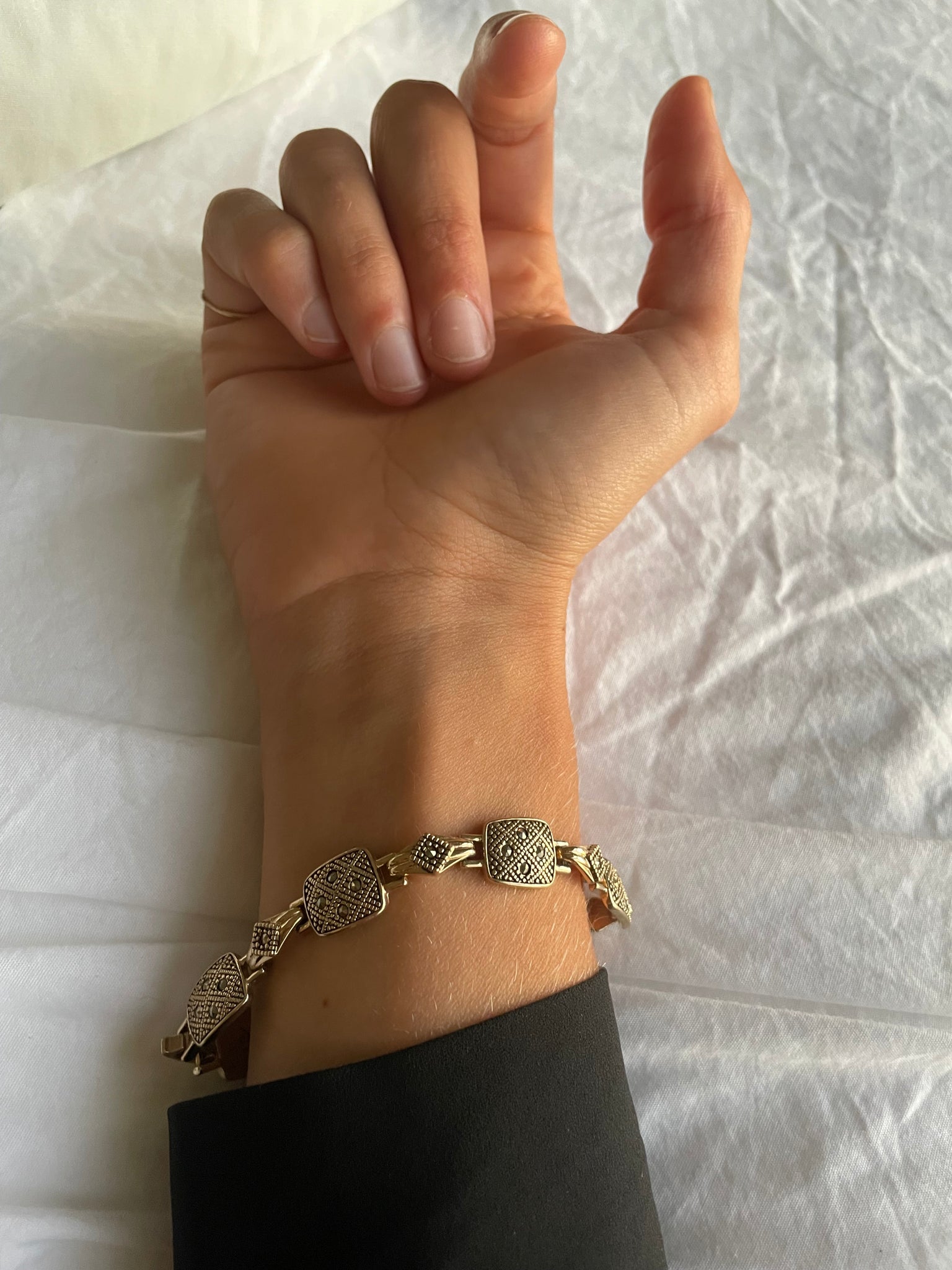 Reborn recycled gold bracelet | one-of-a-kind bold piece to be worn - all day, everyday | this piece features numerous black stones cut to capture light in the most unexpected way |